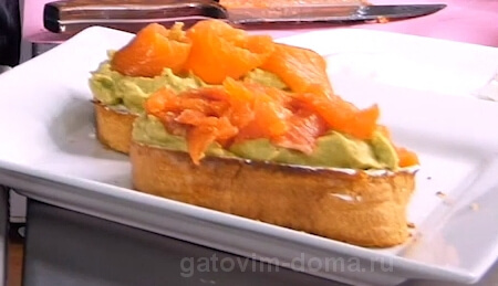 Получившуюся массу авокадо потребуется распределить по тостам.