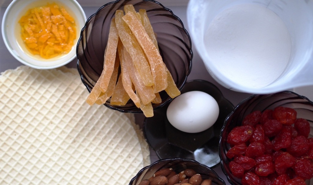- Миндаль, сахарная пудра, кандированные дыня, апельсин и лимон являются необходимыми компонентами, без которых калиссоны не калиссоны.