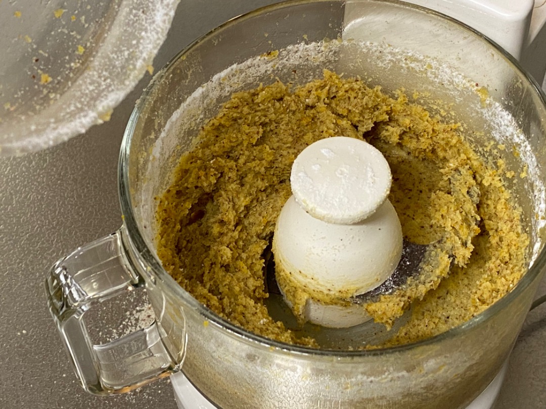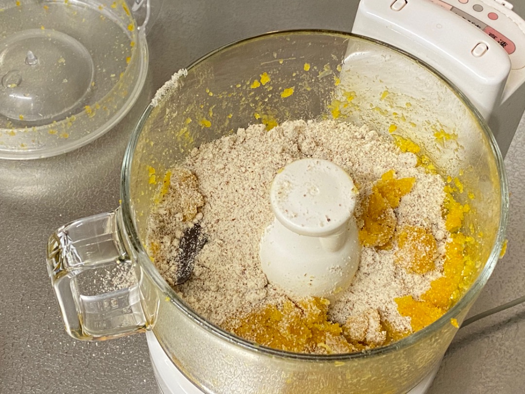 Взбейте миндаль в мелкую крошку, почти в муку.