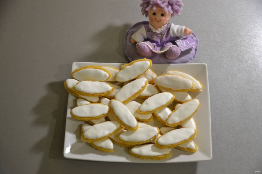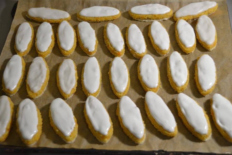 На готовые заготовки нанесите сахарную глазурь и отправьте в духовку на 10 минут при минимальной температуре.