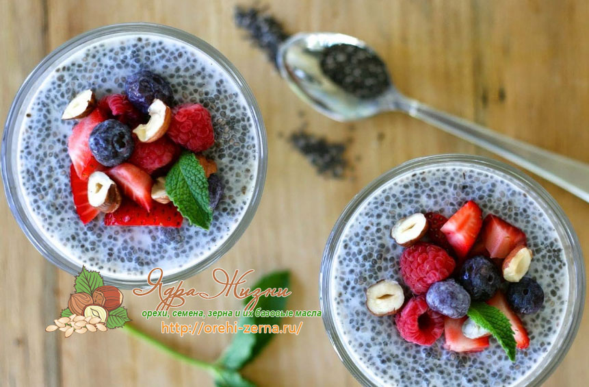 О том, как готовить семена чиа, можно вовсе не беспокоиться. В качестве посыпки для десертов, выпечки, салатов или йогуртов они выглядят не хуже чем кокосовая и шоколадная стружка, мак или кунжут. Да и во вкусе порой не проигрывают. Отлично сочетаются семена чиа с молоком. Внесение их в йогурты, творог и молочные коктейли – популярная практика среди тех любителей суперфудов, которые сидят на диетах.