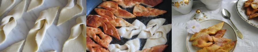 Берем краешек теста и несколько раз продеваем его через отверстие. Обжариваем печенья во фритюре (вы можете также воспользоваться глубокой кастрюлей мелкого диаметра) до готовности в масле высокого качества.