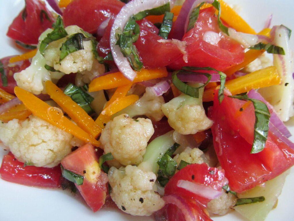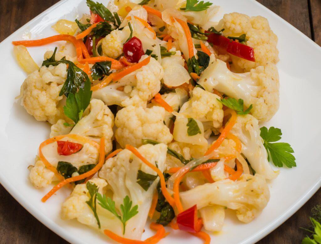 Пикантный салат из цветной капусты с морковью и помидорами