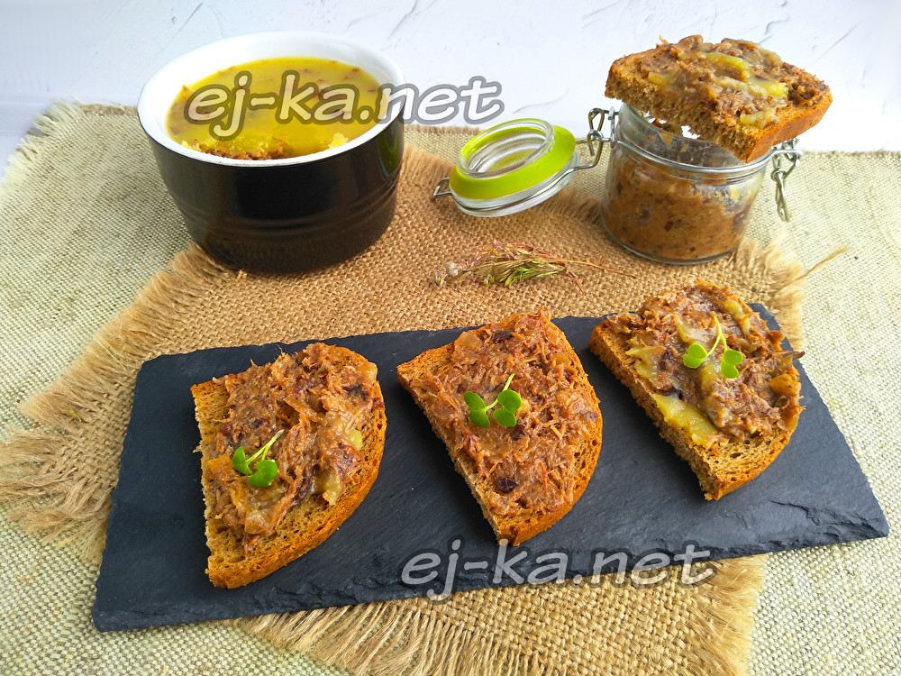 Намазать паштет на хлеб или на теплые гренки.