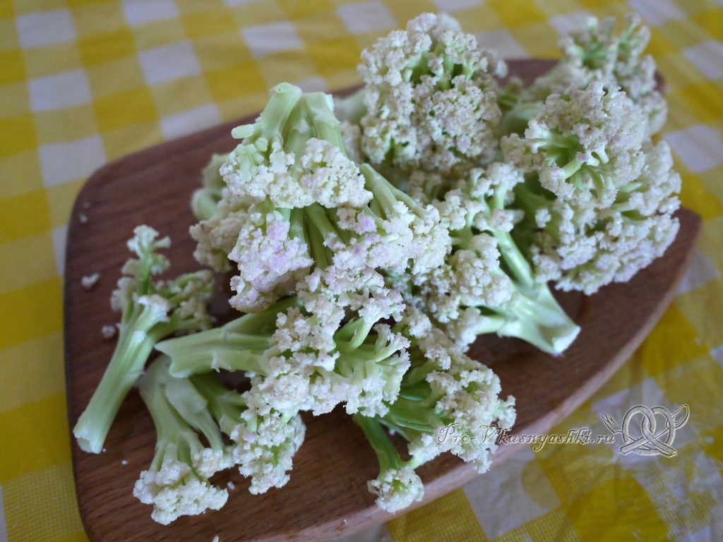 Первым делом хорошо промытый овощ я разбираю на порционные «зонтики». В этот раз решила взять покрупнее, вы можете разрезать на более мелкие кусочки.