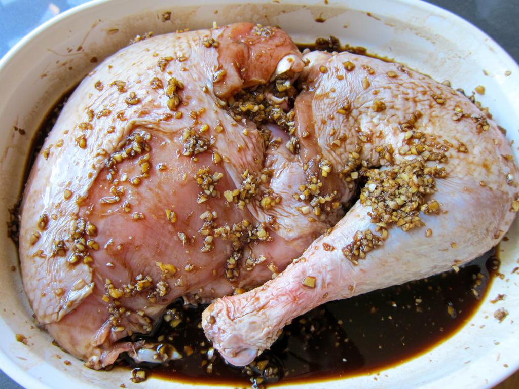 Нередко индейку маринуют в соевом соусе с добавлением меда. Не лишним дополнением к такому маринаду будут имбирь или цедра апельсина, лимона.