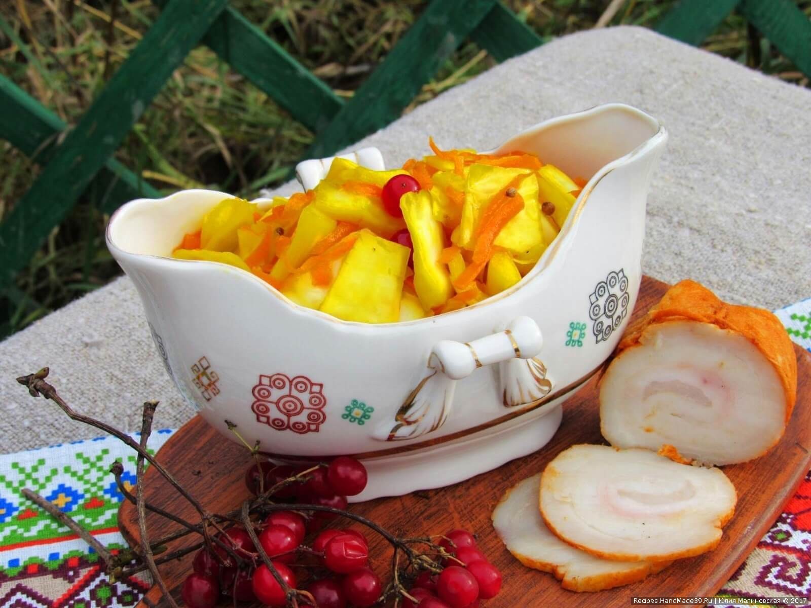 А этот рецепт грузинской кухни. По нему получается вкусное соленье, которое моими домочадцами сметается моментально. Преимущественно я готовлю его для мужа, который в восторге от такой закуски без уксуса и масла. Приступим?