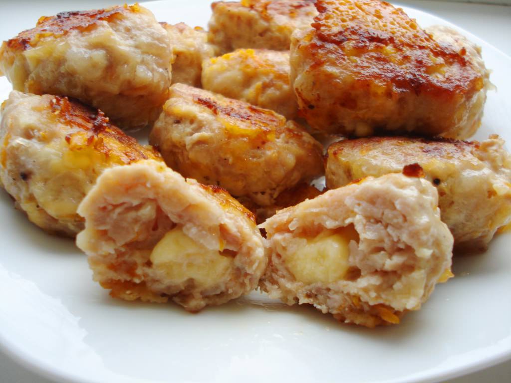Порядок приготовления классического варианта куриных котлет с сырной начинкой:
