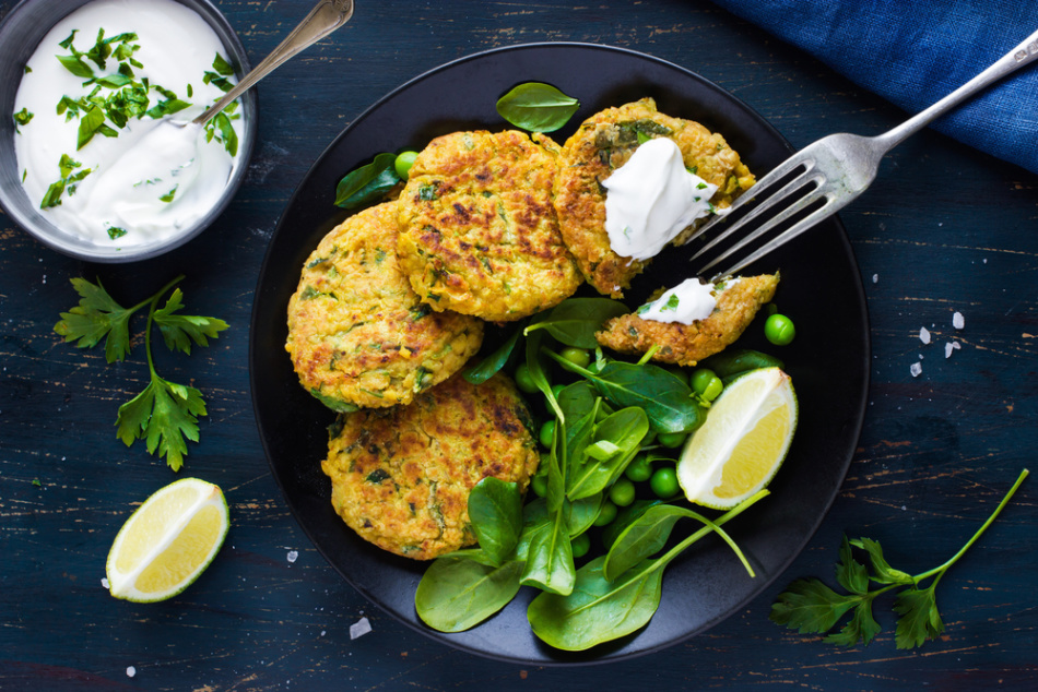 9) Подавать котлеты из фарша индейки и кабачков следует со сметаной. Они одинаково хороши и в горячем, и в холодном виде. Так как в фарш не добавлена мука, оладьи не будут «липкими» изнутри, а сохранят нежность даже в холодном виде.
