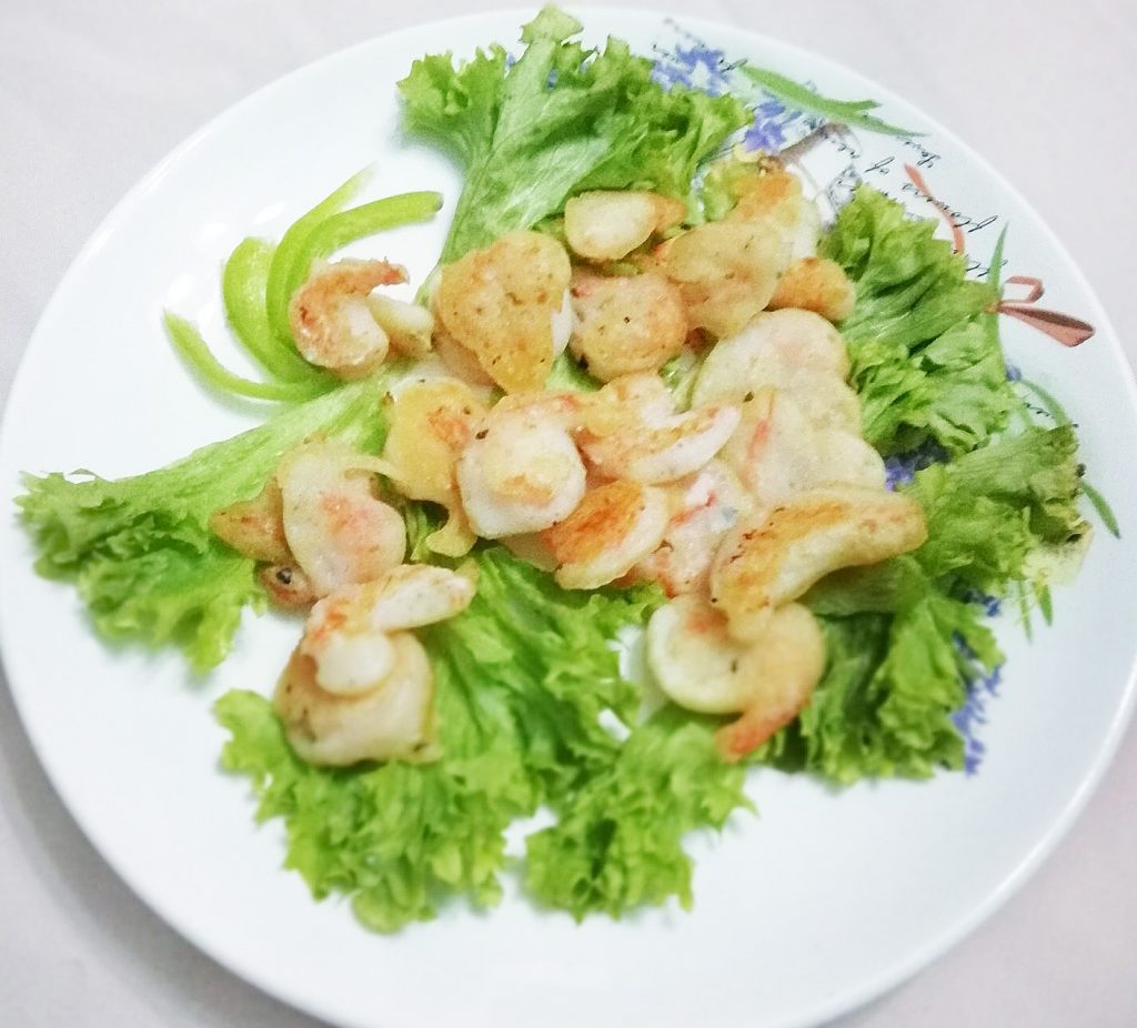 - Смочить креветки этой заправкой, затем панировать в крахмале.