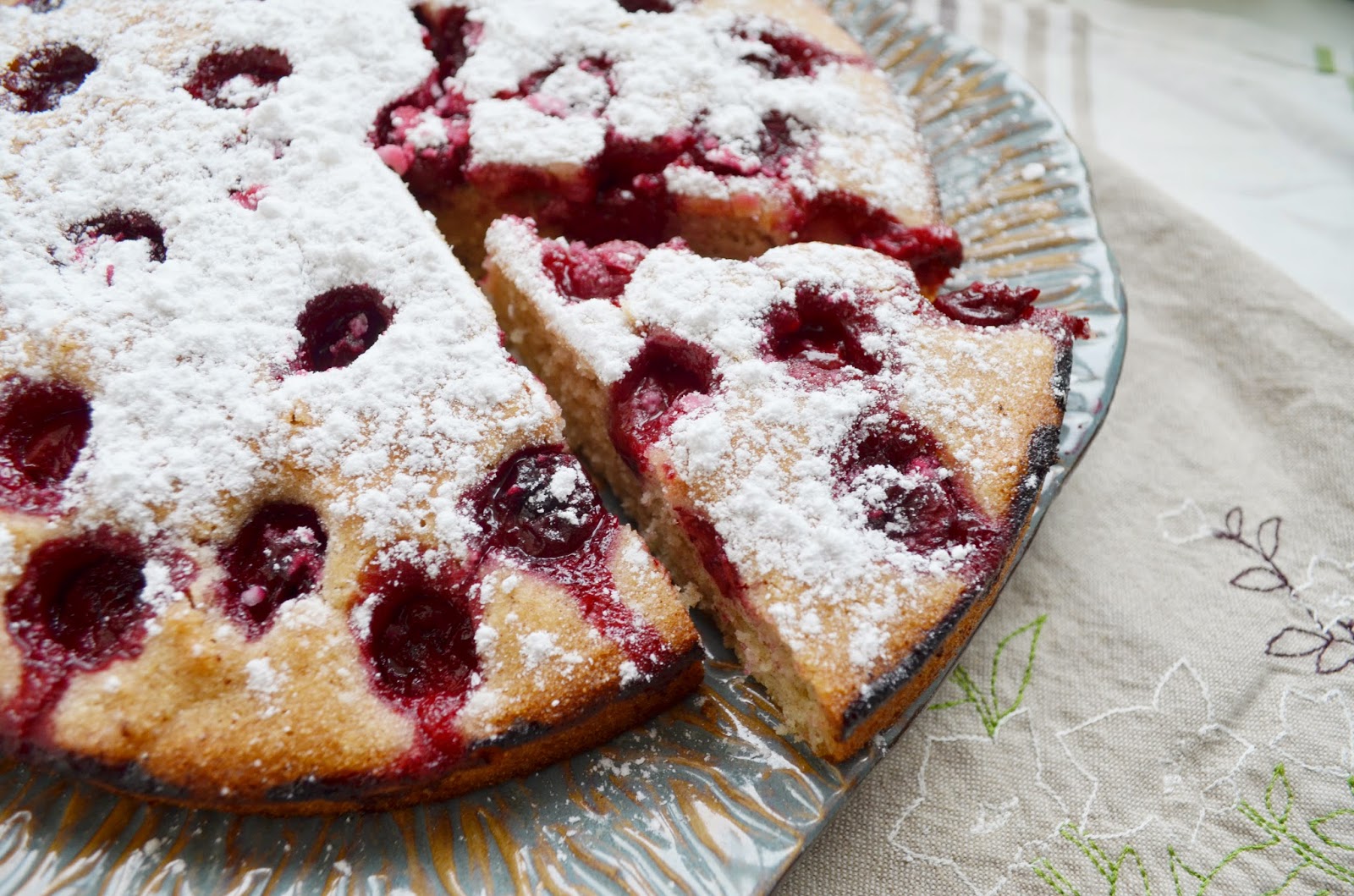 - Соединить манку с яйцами и сыпучей смесью. Переложить тесто в подготовленную форму, сверху утопить вишенки. Распределить ягоды можно в произвольном порядке или каким-то рисунком.