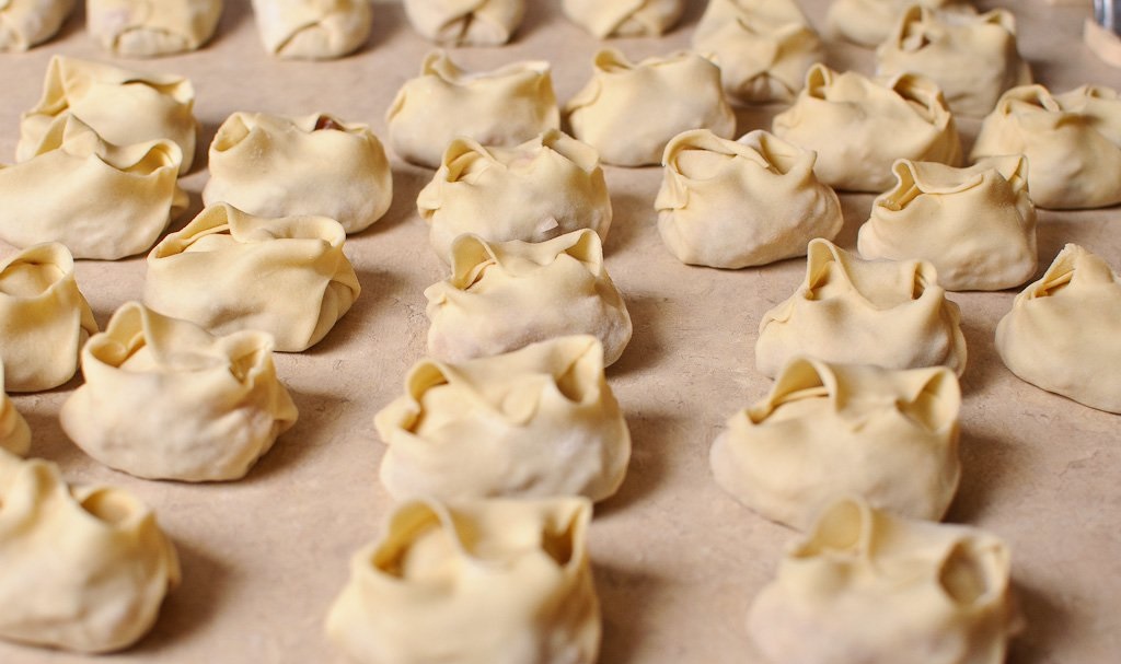 Еще одно отличие – это состав начинки. Кроме мясного фарша в нее добавляют много лука или другие овощи (картофель, тыкву), чтобы сделать начинку мягкой и сочной, а также в оригинальных рецептах кладут курдючный жир (можно заменить говяжим или сливочным маслом). Если жирность – это на любителя, то сочная начинка в мантах присутствует обязательно, и для этого к мясу добавляют какой-нибудь сочный овощ, чаще всего лук.