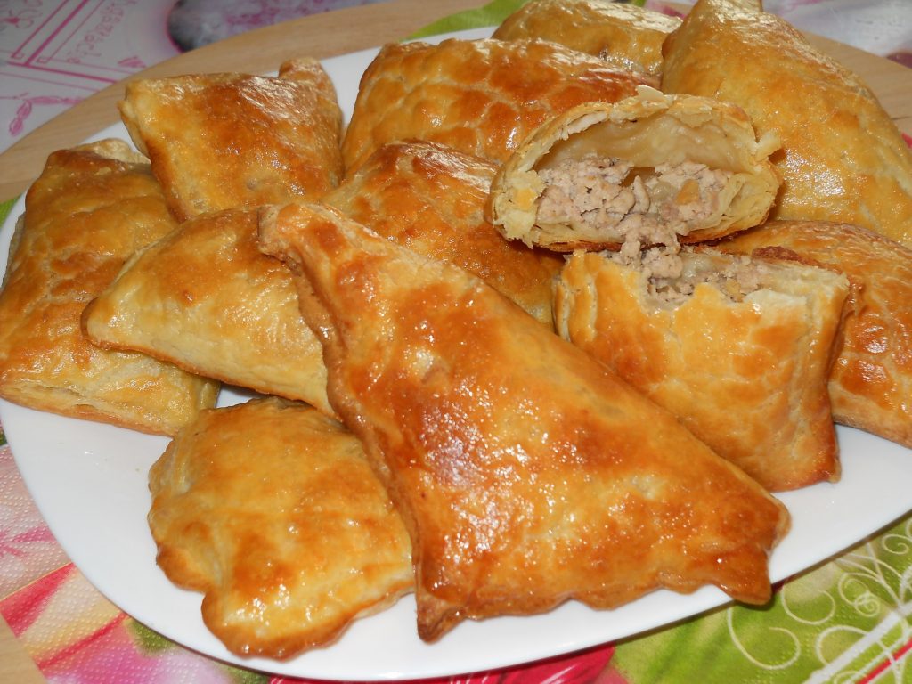Пирожки с мясом из слоёного теста: