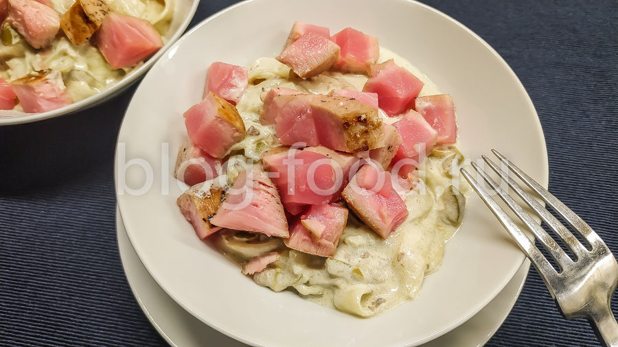 Сегодняшний наш гость относится к разряду роскошных. Потрясающее сочетание сливок, яичной лапши, тунца и яркого рыбного аромата возносят данное блюдо на очень высокий уровень. Ну, по крайней мере, на наш вкус )).