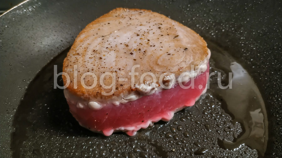 На сильном огне обжариваем рыбу по минуте с каждой стороны, включая борта.