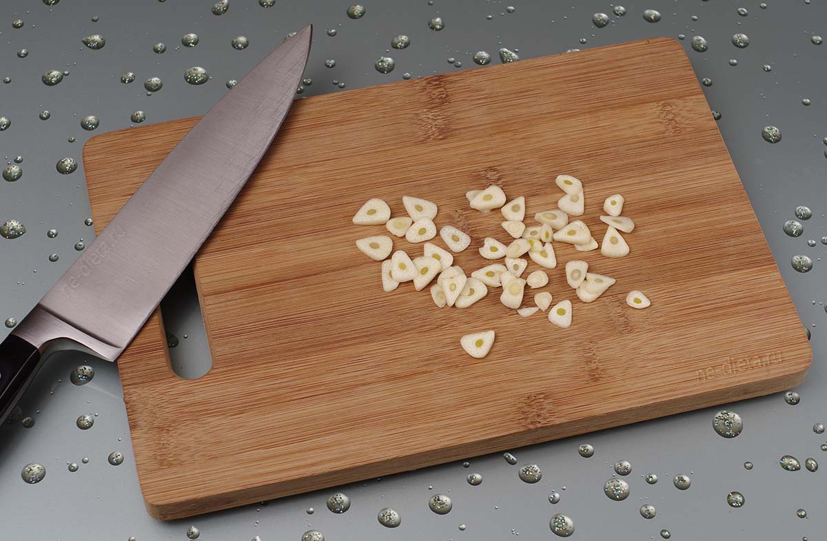 - Нарезать кружочками (использовать весь перец вовсе необязательно, в противном случае получится слишком острое блюдо).