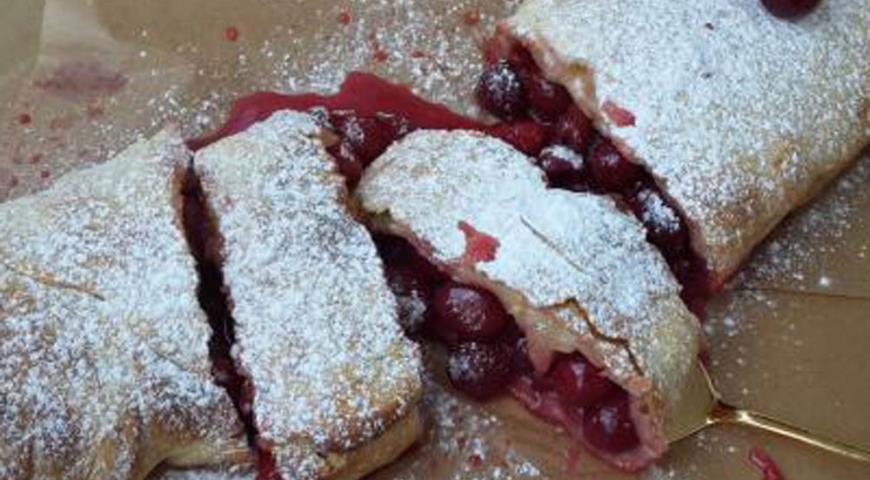 Слоеный пирог с вишневой начинкой