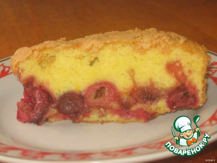 - Включив духовой шкаф на максимум, чтоб прогревался, промазываем форму маслом. Выливаем в нее 2/3 теста, позже кладем ягодную начинку, перемешанную с сахаром и сверху – остатки испытательной массы.