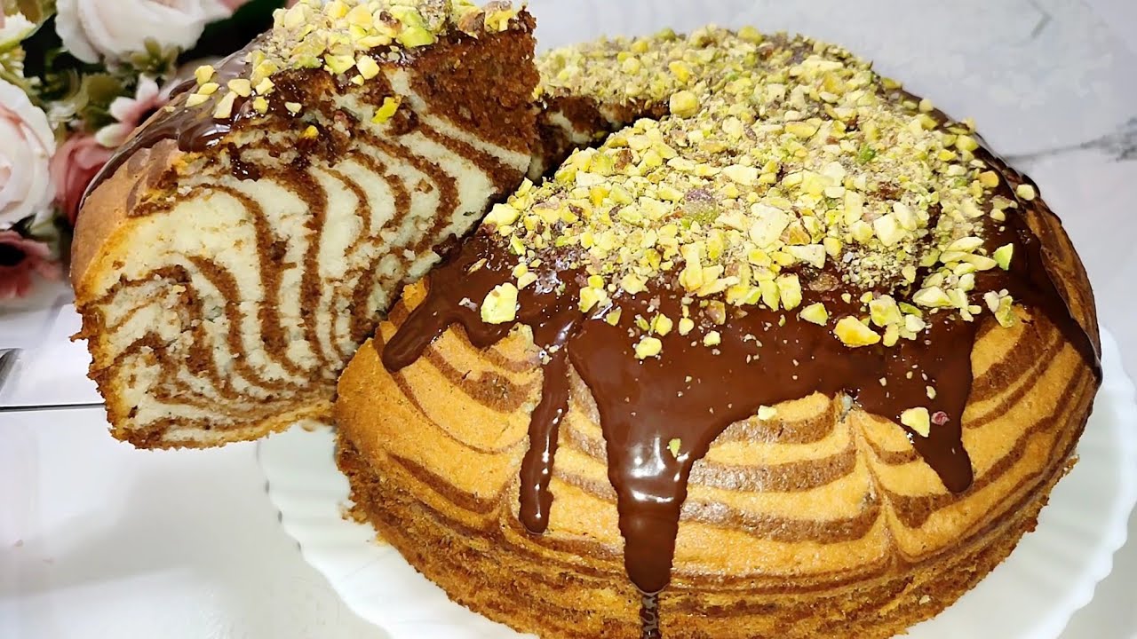 Рецепт бисквита «Зебра» на молоке с фисташками