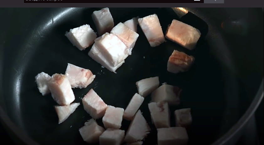 Сначала подготовим курдючное сало. Нам оно потребуется в жидком виде, поэтому придется его растопить. Для этого нарезаем курдюк небольшими квадратиками.