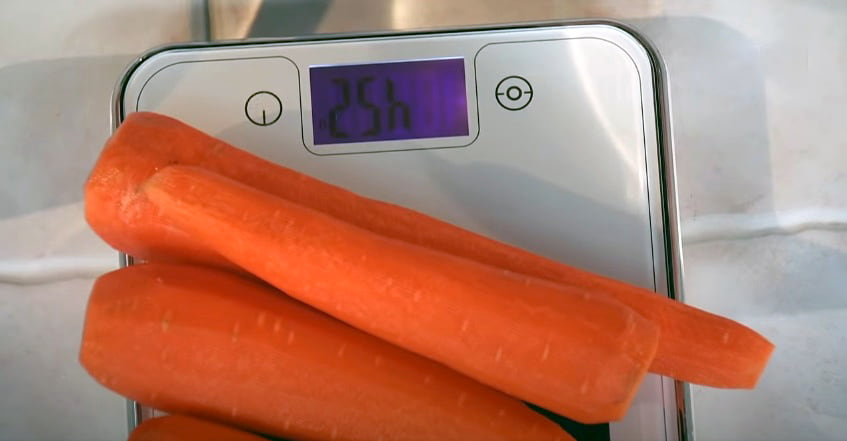 Морковь чистим овощечисткой или ножом, сполоснем под водой и натрем крупно.
