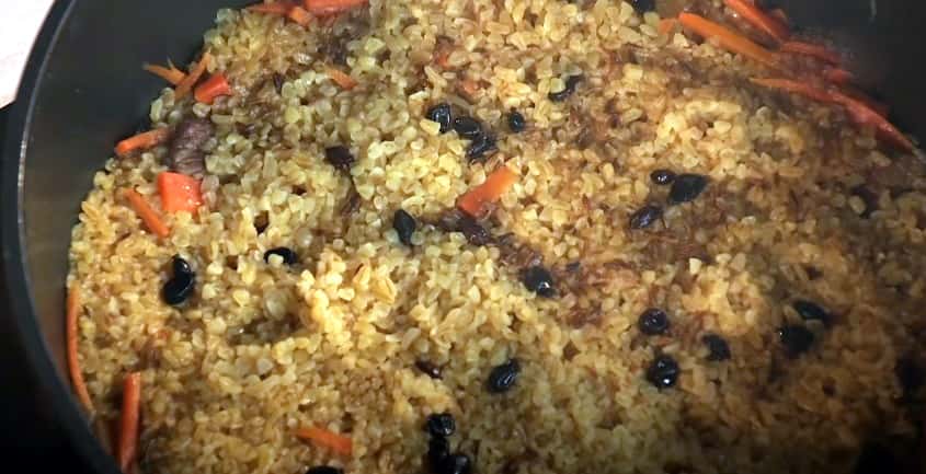 Вариант 4: Плов из булгура с курицей, курагой и грецкими орехами