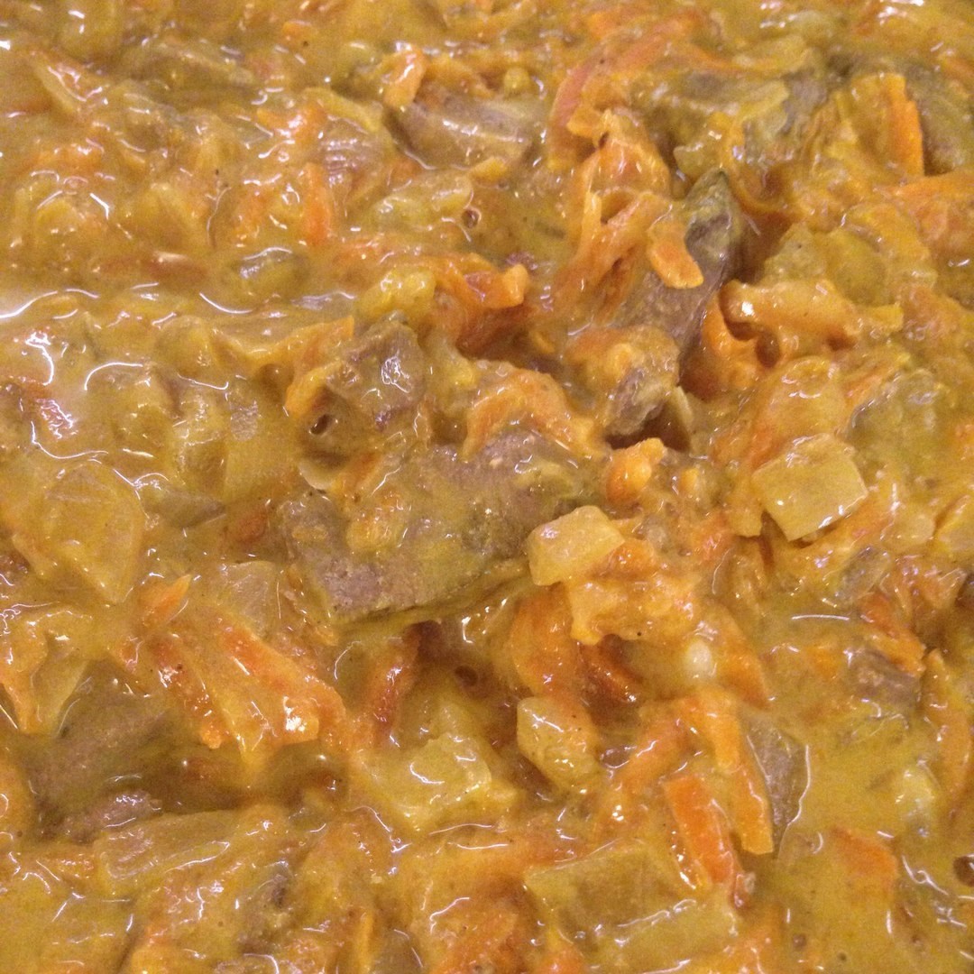 Тушить печень с подливой на слабом огне минут 5-7, временами помешивая.