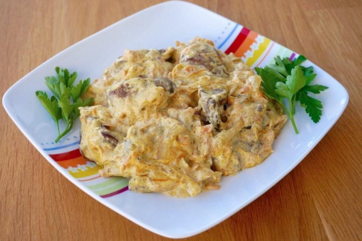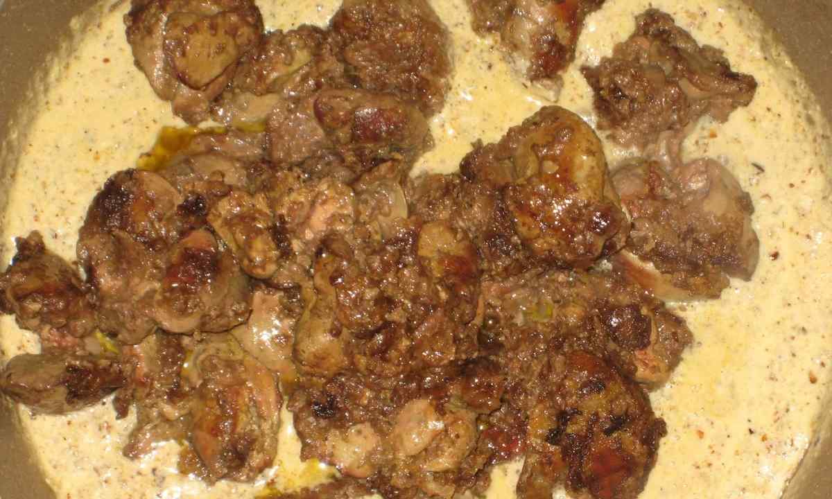 Рецепт приготовления куриной печенки в сметане на сковороде