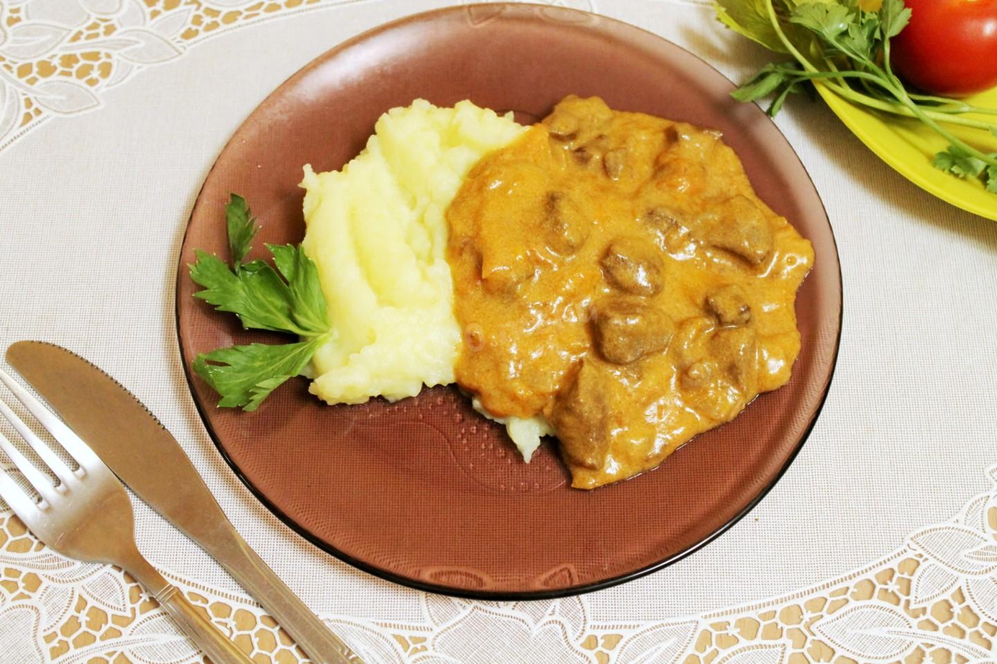 Оригинальным деликатесным блюдом является печень по-строгановски. Для его приготовления понадобятся следующие ингредиенты:
