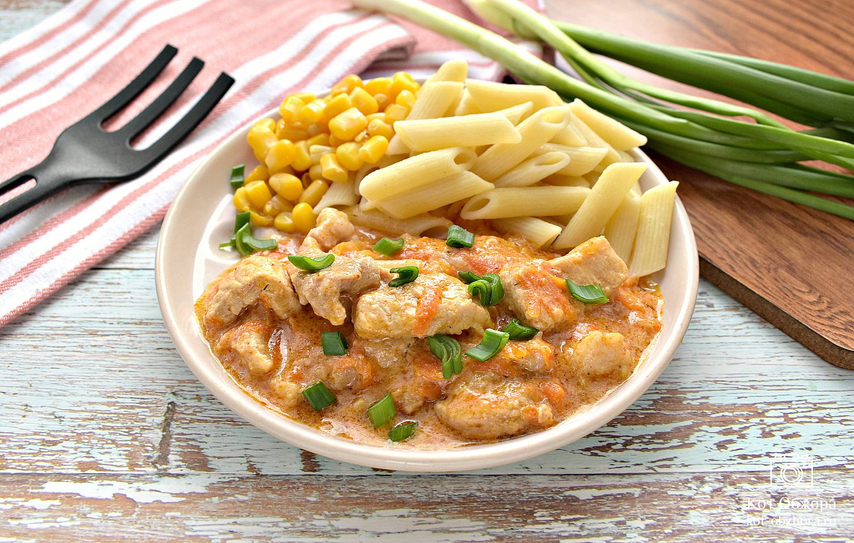Сметанная подлива с куриной печенью и консервированной кукурузой