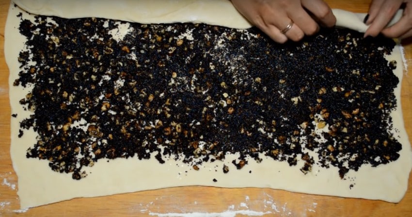 Рулет с маком из слоеного теста
