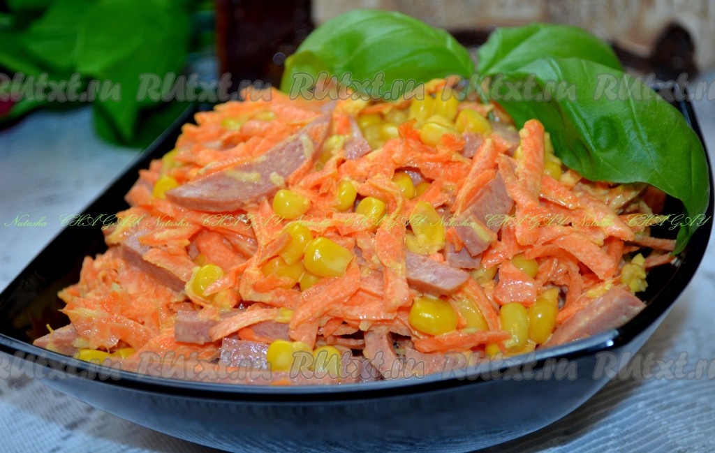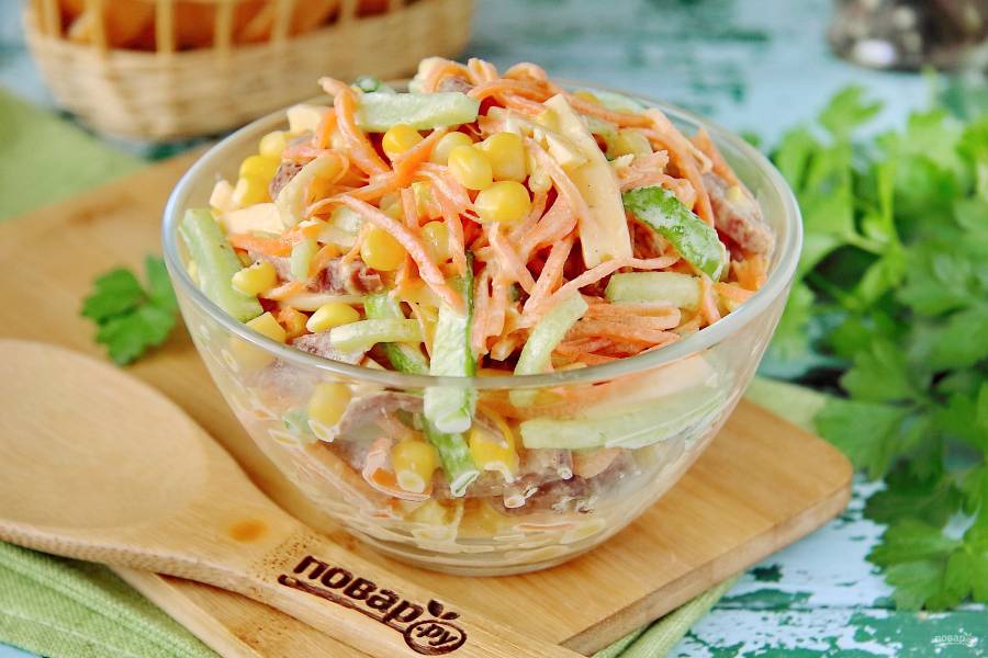 Ароматный и вкусный салат, который легко приготовит даже начинающая хозяйка. Рецепт может стать палочкой-выручалочкой в ситуации, когда нужно приготовить что-то вкусное и сытное на скорую руку.