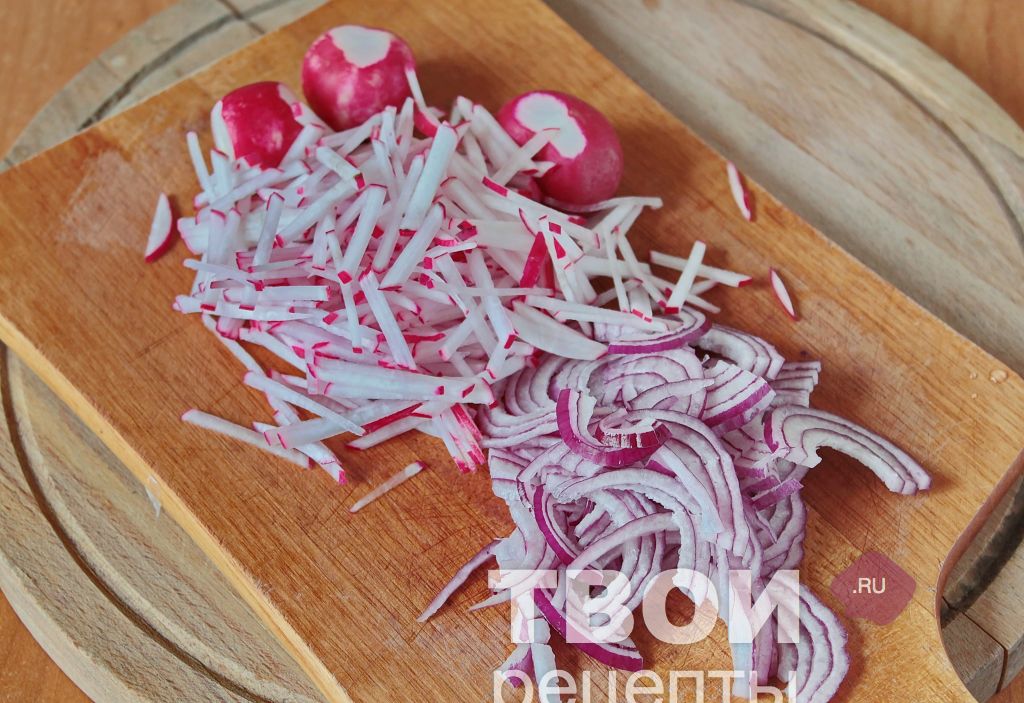 Редька в салате станет вкуснее, если смешать ее с луком, предварительно обжаренным в растительном масле.