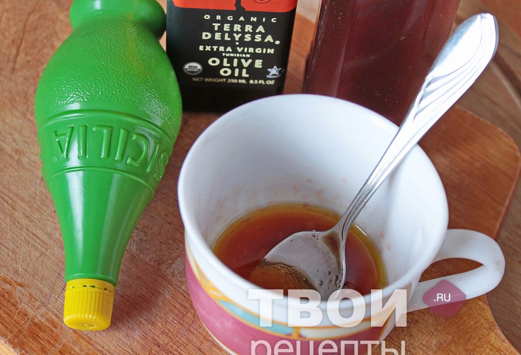 Отдельно соединить бальзамический уксус, оливковое масло, горчицу и перчик – размешать нужно тщательно.