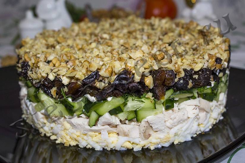 Салат «Неженка» с курицей, черносливом и грецкими орехами