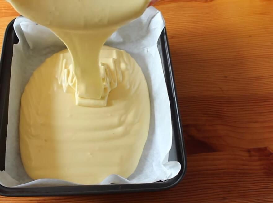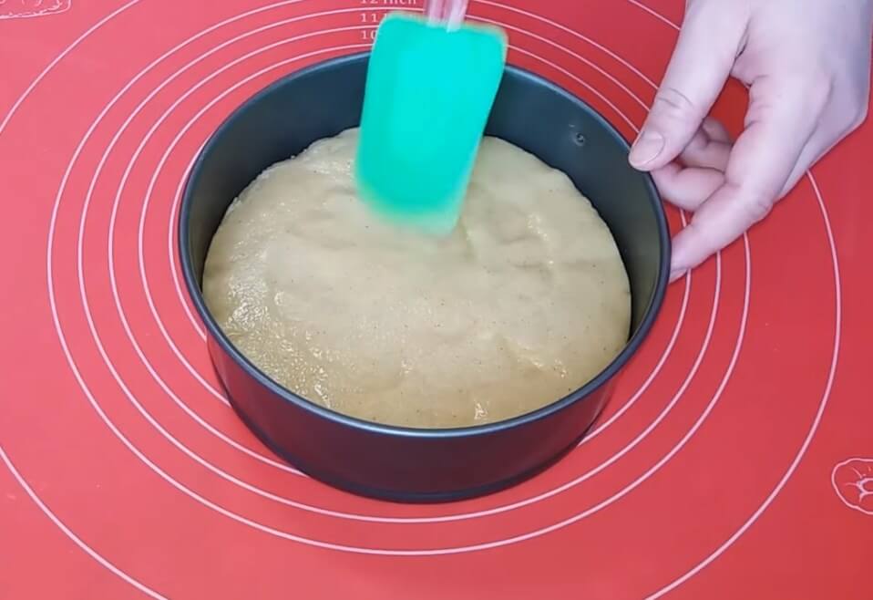 9. Теперь нужно вылить бисквитное тесто.