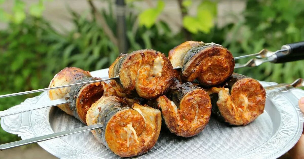 Рецепт шашлыка из скумбрии на мангале на шампурах