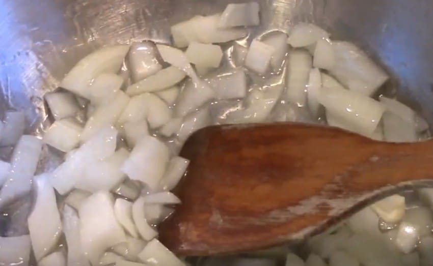 - Для начала необходимо измельчить репчатый лук и обжарить его на растительном масле.