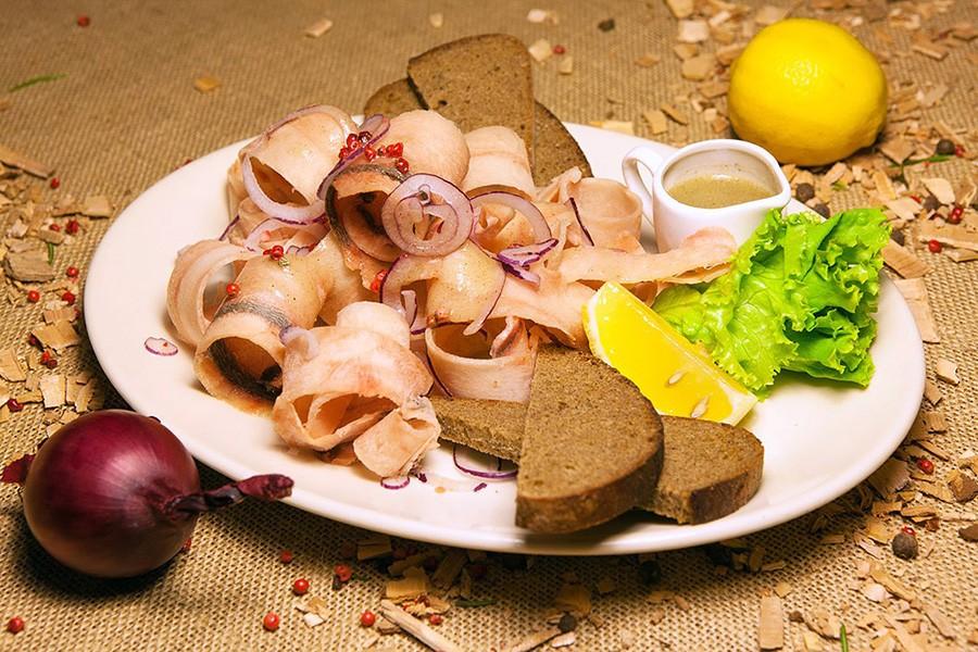 Строганину заедают черным хлебом и свежим репчатым луком. К ней традиционно подают крепкий алкоголь – водку или горькие настойки.
