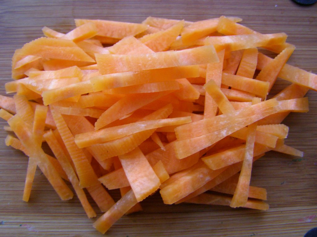 Следующий персонаж этого замечательного действа – морковка. Если у вас не любят ее, нарежьте немного и так, чтобы она была незаметна.