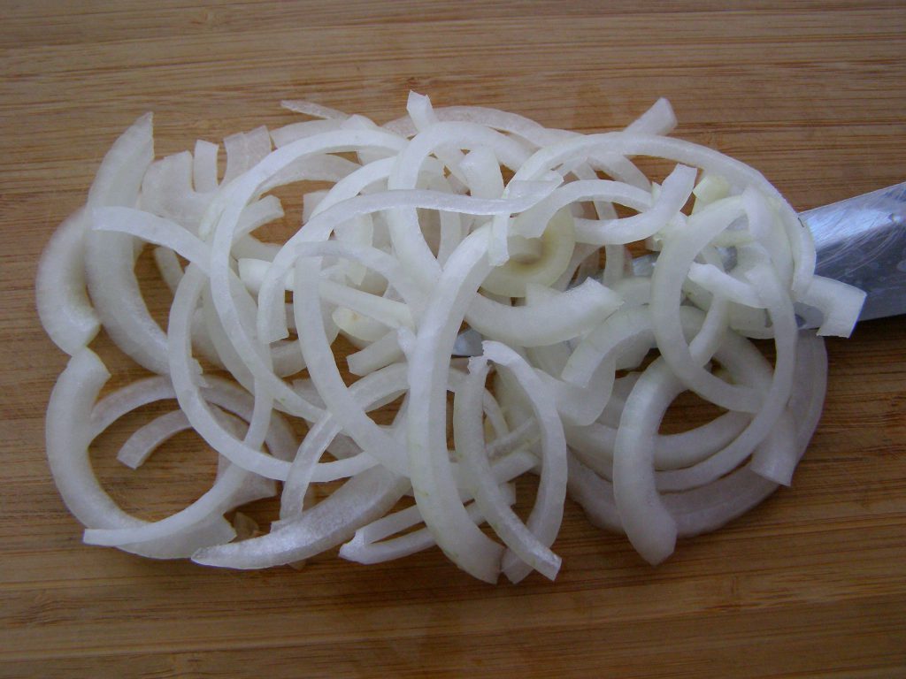Как только вы положите лук в кастрюлю, через минуту по квартире такие ароматы разнесутся! Это говядина отблагодарит за такое соседство! Итак, я нарезала крупную луковицу пополам, а потом тонкими полукольцами.