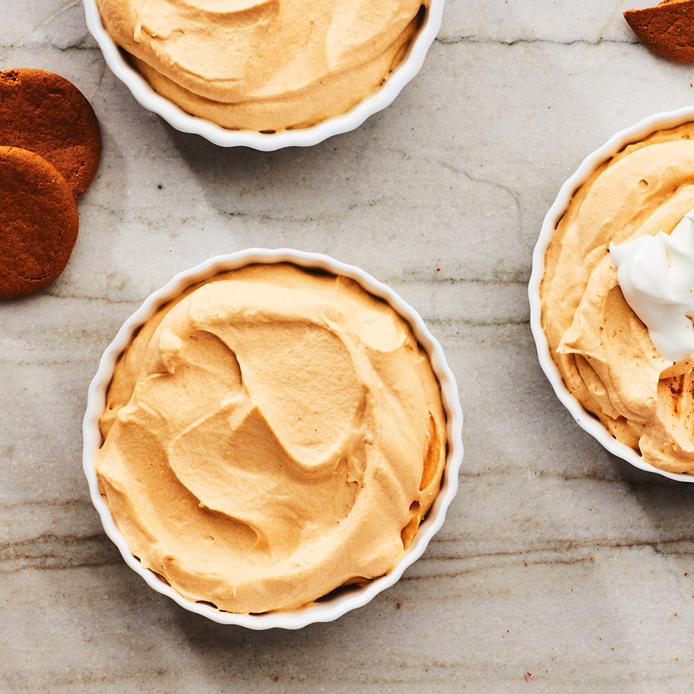 Белый шоколад придает неповторимую сливочную сладость муссу и отлично сочетается с тыквой. Подавайте десерт на праздники и торжества. В США его обычно подают на День благодарения.