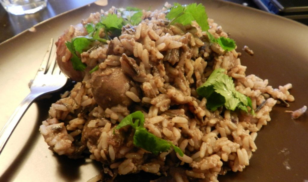 Куриная печень с бурым рисом