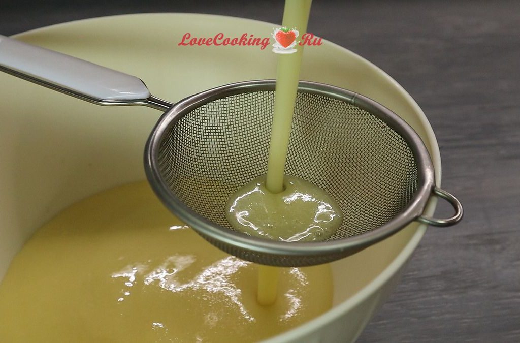 - Процеди ее через ситечко и нагрей на слабом огне. Добавь масло и вари до загустения, помешивая. Полностью остуди курд.