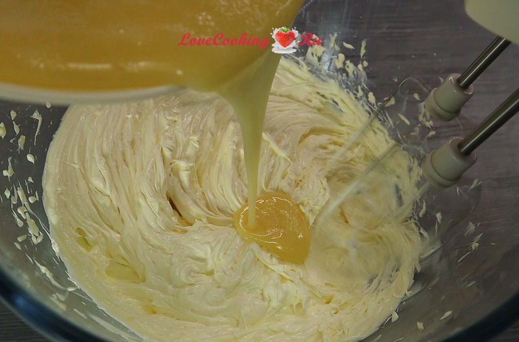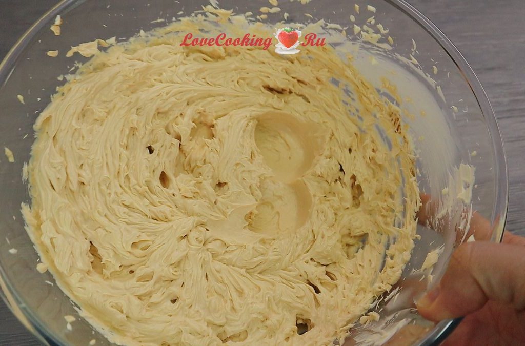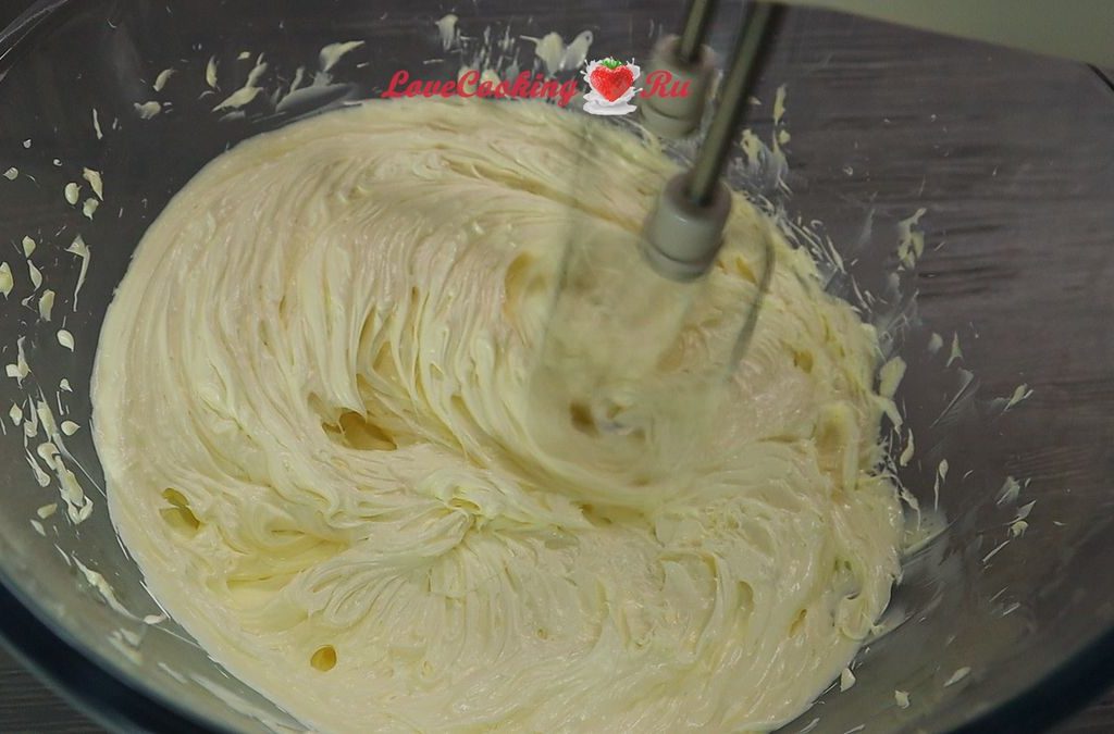 Взбиваем размягченное масло, небольшими порциями добавляем заварную основу