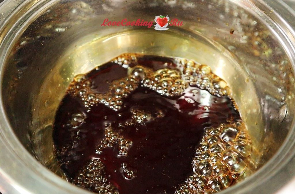 Нагреваем примерно до 85 градусов. Без кухонного термометра сложновато, но исполнимо. В общем, как только масса загустеет, станет глянцевой, прогреваем буквально 3-4 минуты и снимаем с плиты