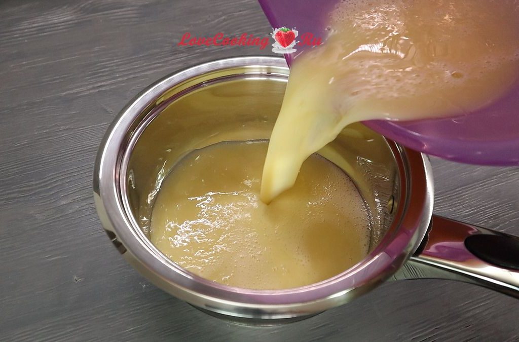 Способ приготовления заварного крема с варёной сгущенкой для торта