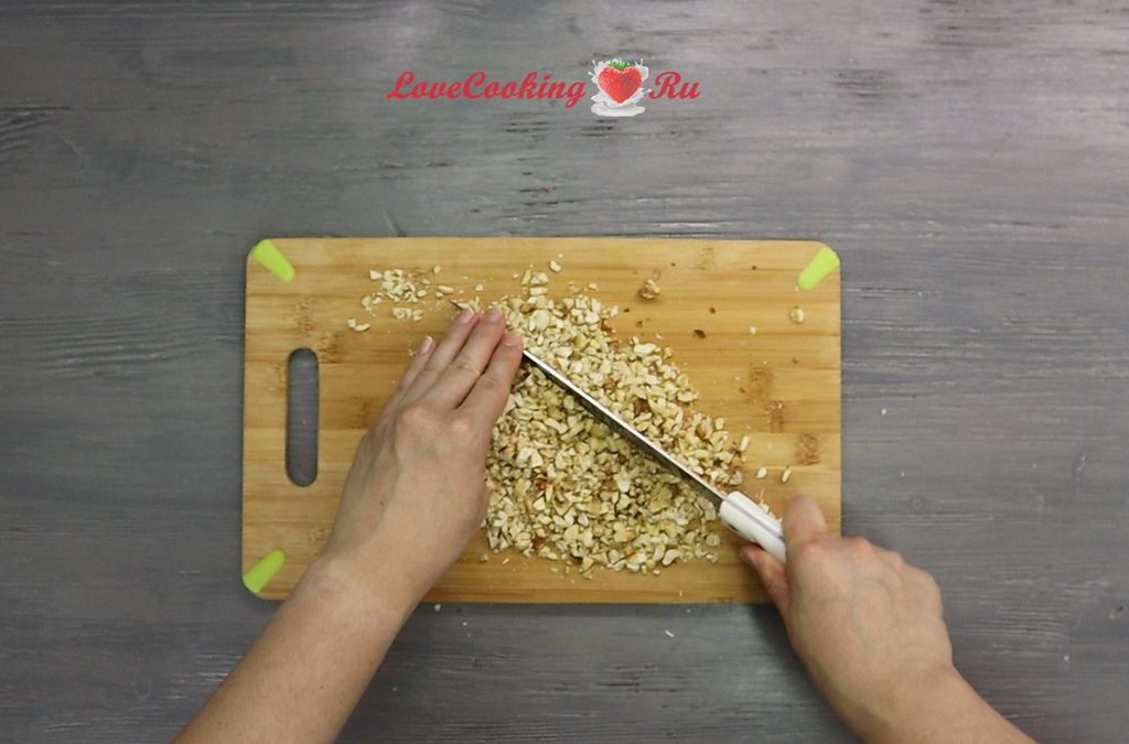 - Собери меренговый торт: корж, крем, молотые орехи, корж, крем, снова орехи и карамель.